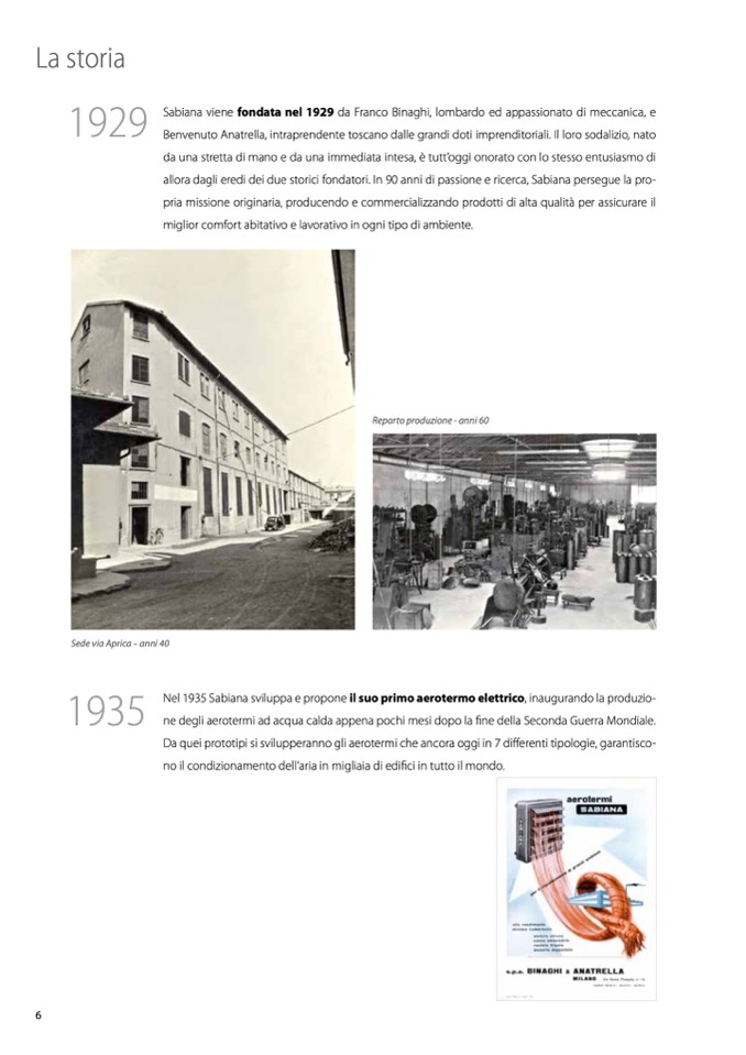 Nel 1935 Sabiana sviluppa e propone il suo primo aerotermo elettrico, inaugurando la produzio-