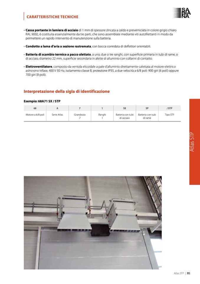 • Elettroventilatore, composto da ventola elicoidale a pale d’alluminio direttamente calettata al motore elettrico