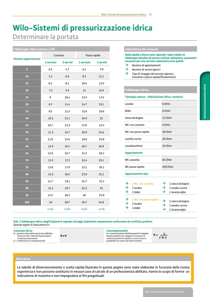 fabbisogno idraulico di utenze civili per abitazione. I parametri