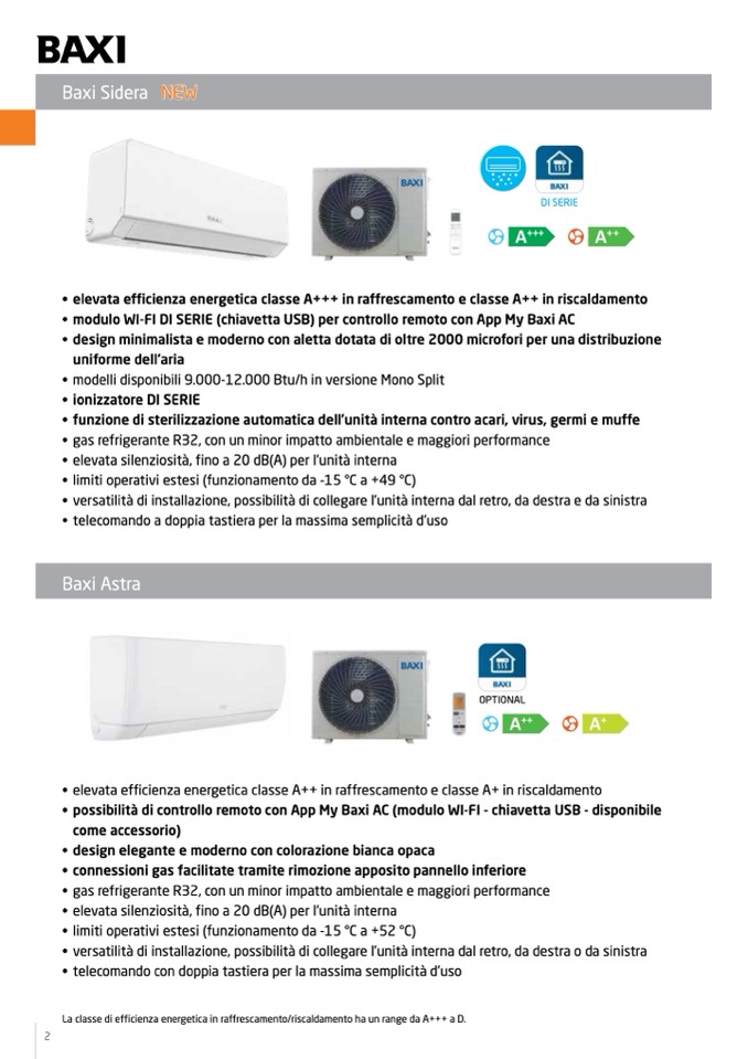 • modelli disponibili 9.000-12.000 Btu/h in versione Mono Split