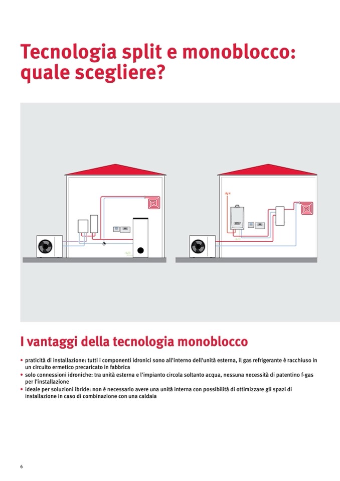 solo connessioni idroniche: tra unità esterna e l'impianto circola soltanto acqua, nessuna necessità di patentino f-gas