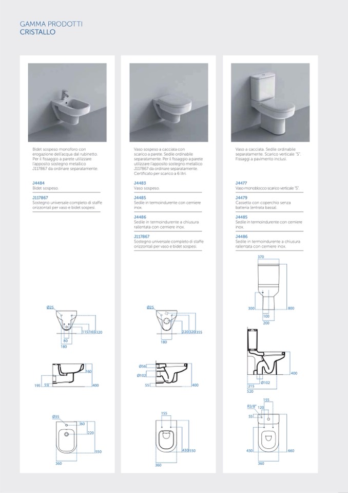 orizzontali per vaso e bidet sospesi.