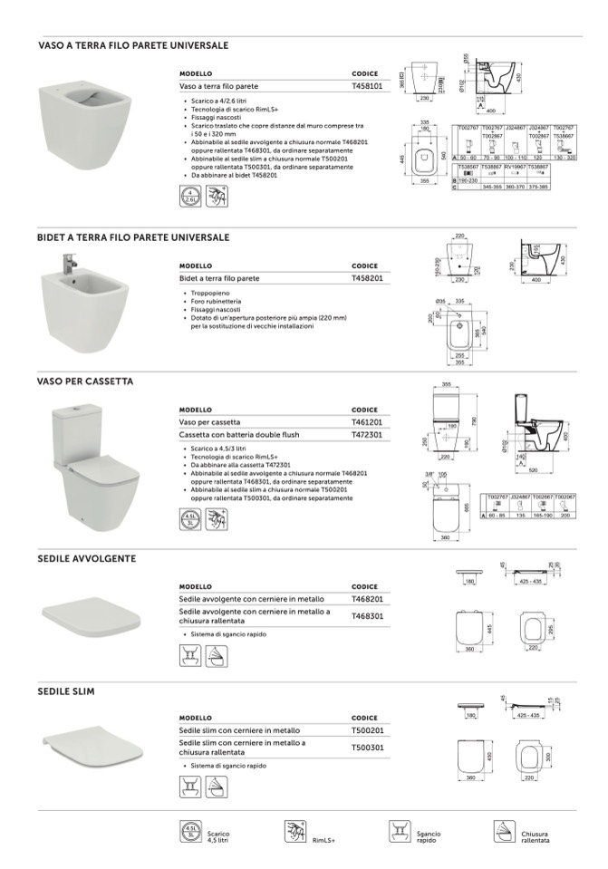 BIDET A TERRA FILO PARETE UNIVERSALE