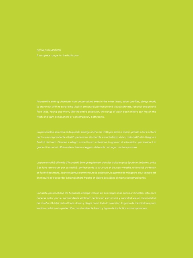 del diseño y fluidez de las líneas. Joven y alegre como toda la colección, la gama de mezcladores para