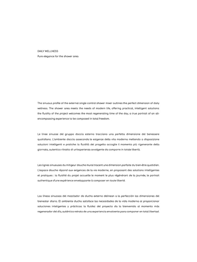 wellness. The shower area meets the needs of modern life, offering practical, intelligent solutions: