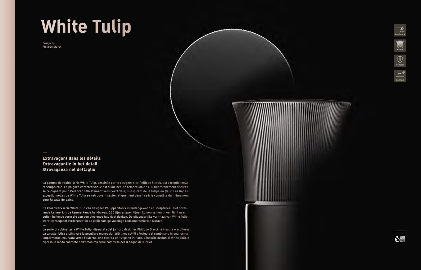 La gamme de robinetterie White Tulip, dessinée par le designer star Philippe Starck, est exceptionnelle