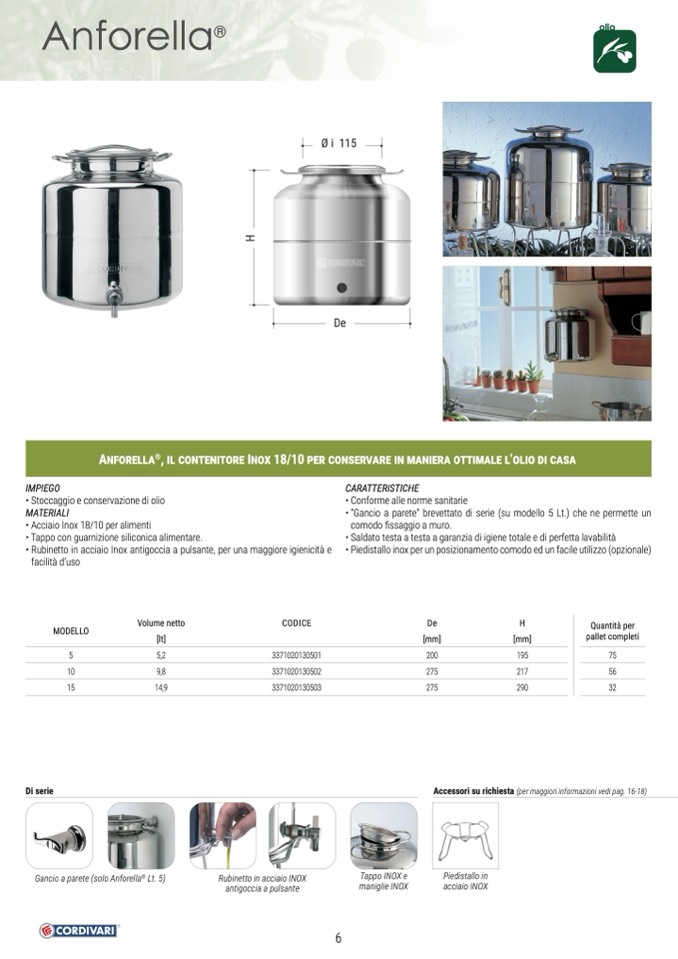 • “Gancio a parete" brevettato di serie (su modello 5 Lt.) che ne permette un