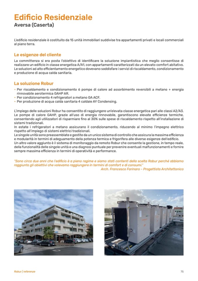 L’impiego delle soluzioni Robur ha consentito di raggiungere un’elevata classe energetica pari alle classi A2/A3.