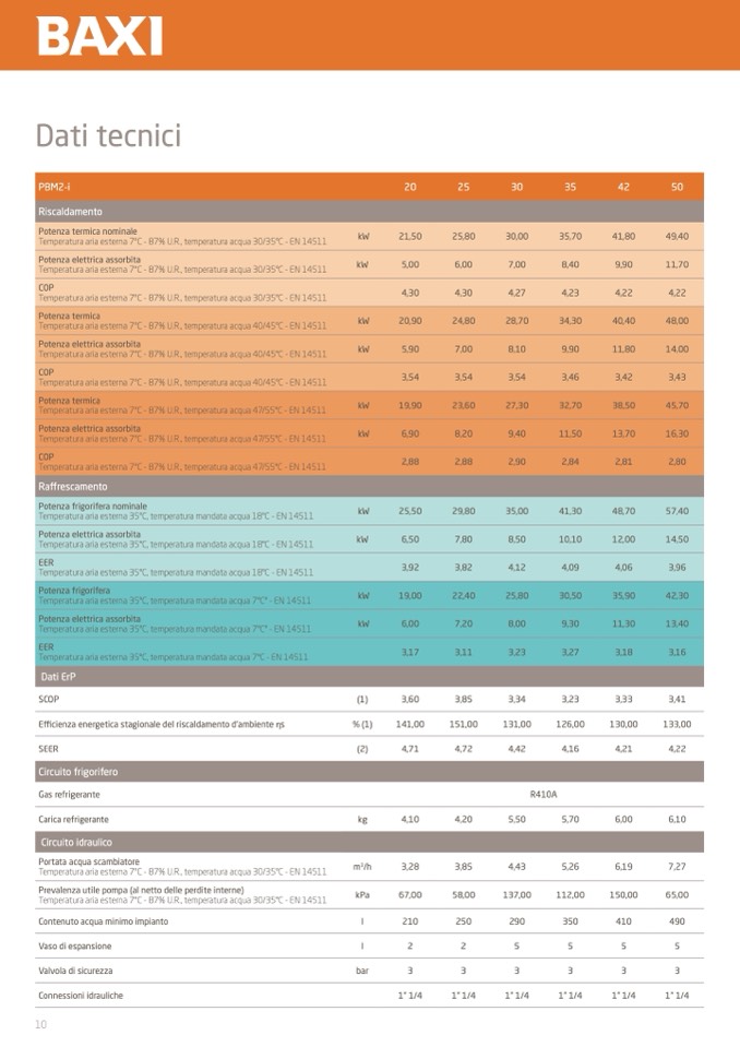 Temperatura aria esterna 7°C - 87% U.R., temperatura acqua 47/55°C - EN 14511
