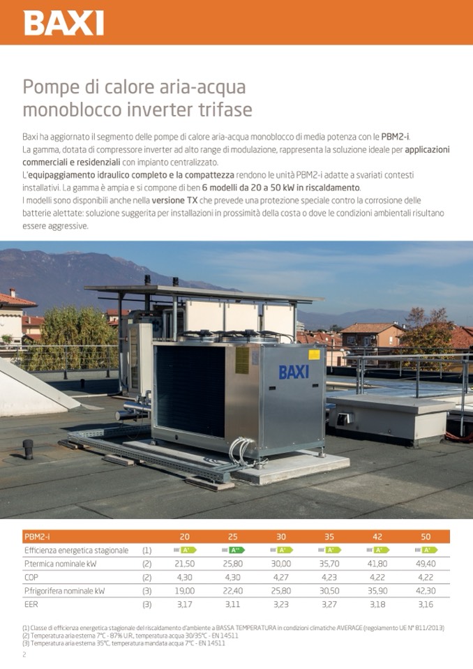 Baxi ha aggiornato il segmento delle pompe di calore aria-acqua monoblocco di media potenza con le PBM2-i.
