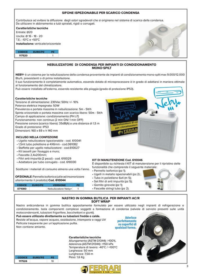 NEBY+ è un sistema per la nebulizzazione della condensa proveniente da impianti di condizionamento mono-split max 9.000/12.000