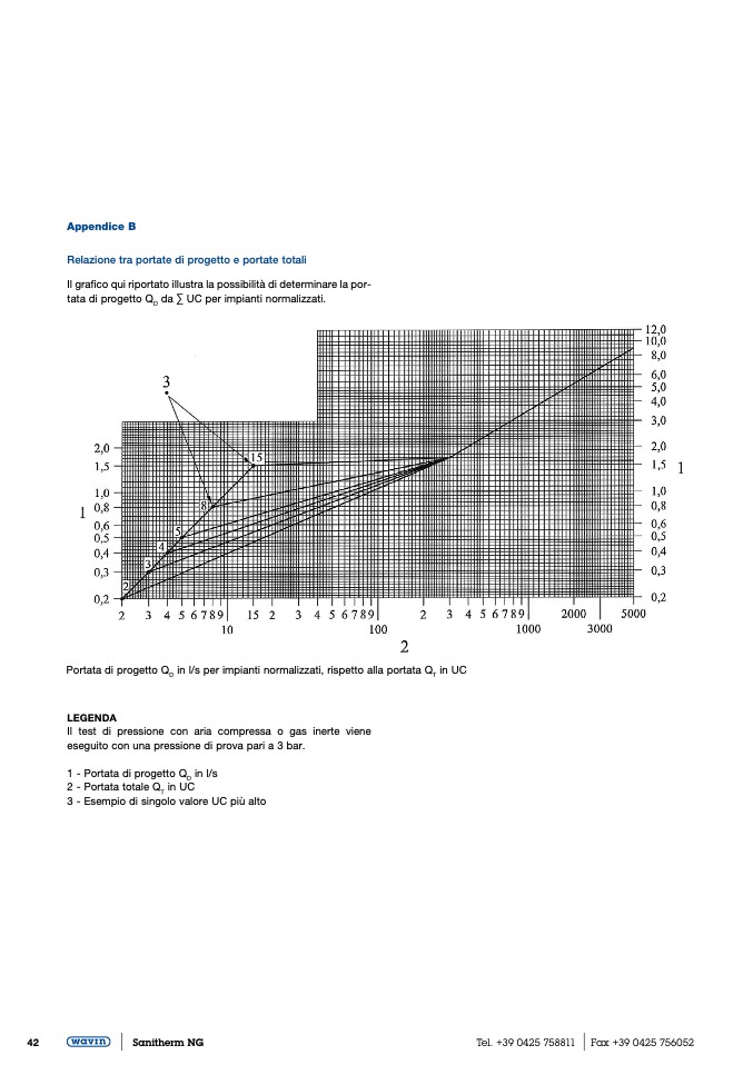 in l/s per impianti normalizzati, rispetto alla portata Q