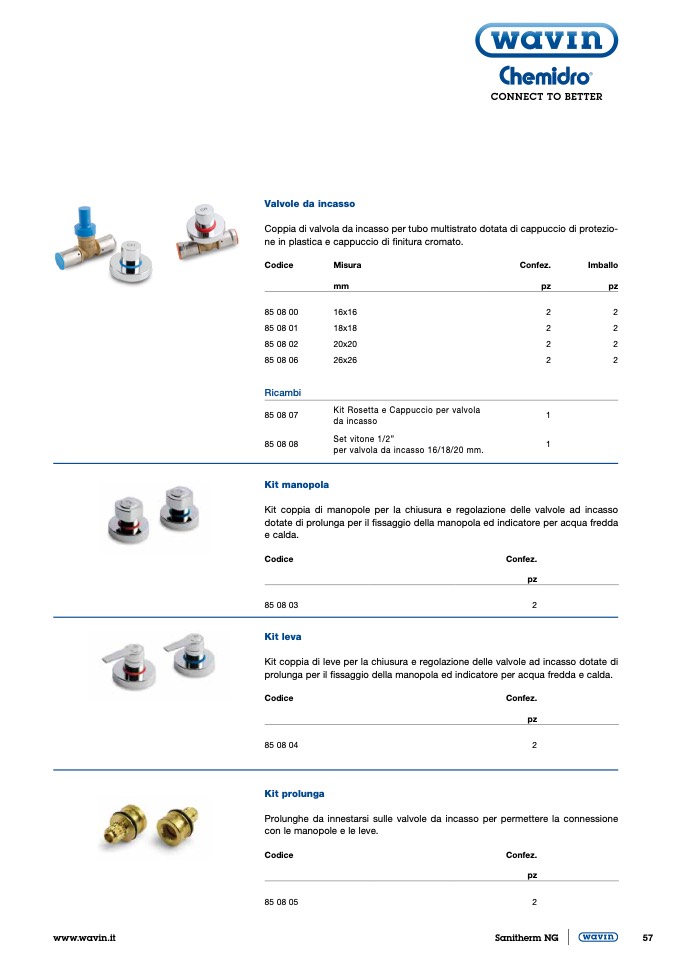Prolunghe da innestarsi sulle valvole da incasso per permettere la connessione
