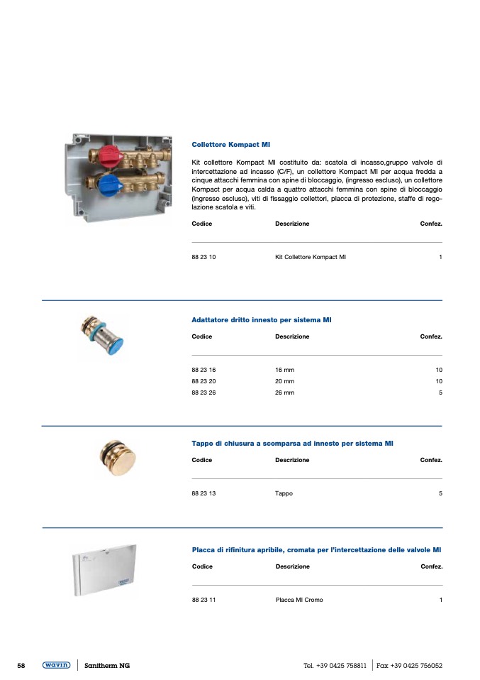intercettazione ad incasso (C/F), un collettore Kompact MI per acqua fredda a