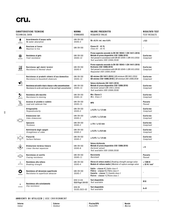 Test passed in accordance with EN ISO 10545-1 (EN 1411:2016)