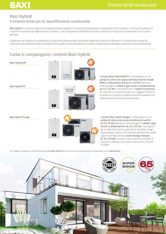 Per maggiori dettagli sui sistemi ibridi residenziali Baxi Hybrid fare riferimento al catalogo dedicato, disponibile sul sito www.baxi.it