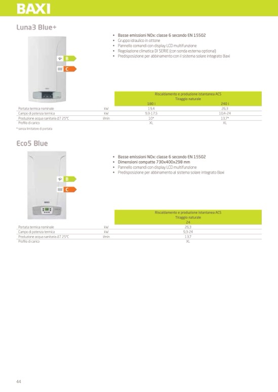 • Basse emissioni NOx: classe 6 secondo EN 15502