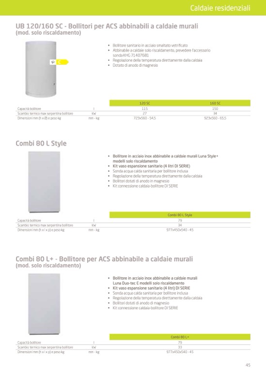 • Bollitore in acciaio inox abbinabile a caldaie murali Luna Style+