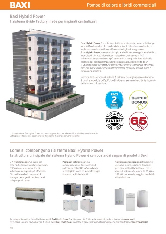 Per maggiori dettagli sui sistemi ibridi commerciali Baxi Hybrid Power fare riferimento alla Guida per la progettazione disponibile sul sito www.baxi.it
