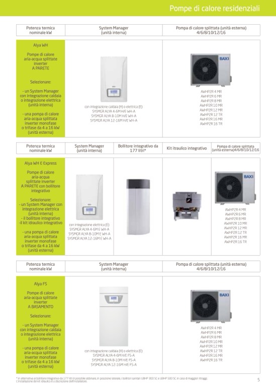 con integrazione caldaia (H) o elettrica (E):