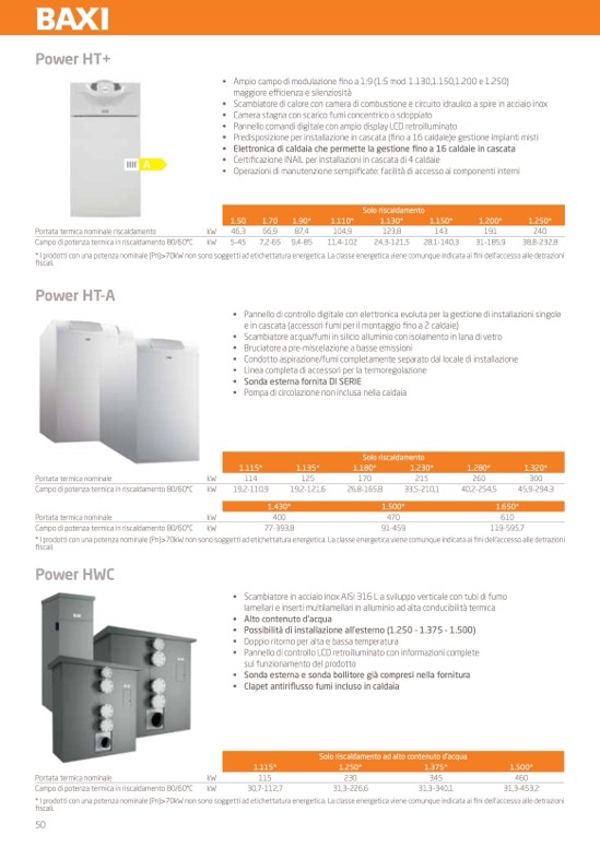 * I prodotti con una potenza nominale (Pn)>70kW non sono soggetti ad etichettatura energetica. La classe energetica viene comunque indicata ai fini dell’accesso alle detrazioni