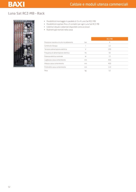 • Possibilità di ospitare fino a 3 contalitri per ogni Luna Sat RCZ-MB