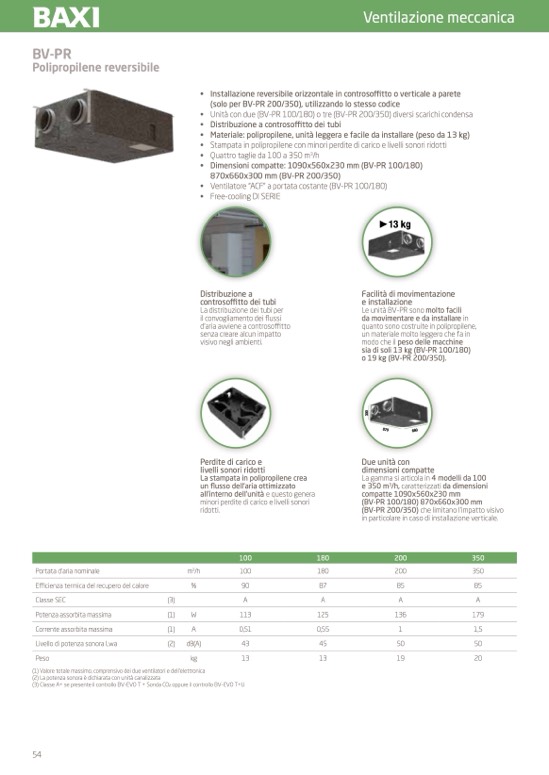 (3) Classe A+ se presente il controllo BV-EVO T + Sonda CO2 oppure il controllo BV-EVO T+U