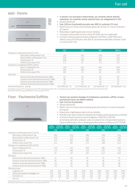 (1) Temperatura acqua 7/12°C, temperatura aria 27°C BS e 19°C BU secondo EN 1397 - (2) Temperatura acqua 40/45°C, temperatura aria 20°C BS e 15°C BU secondo EN 1397