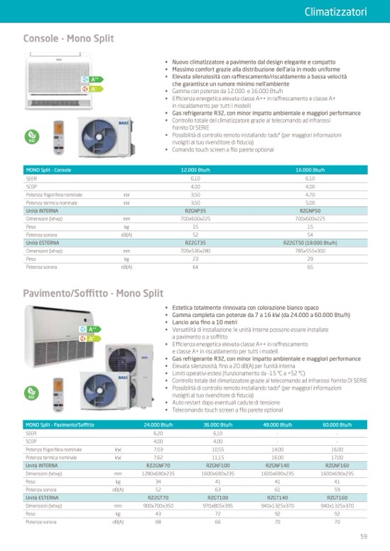 • Gamma completa con potenze da 7 a 16 kW (da 24.000 a 60.000 Btu/h)