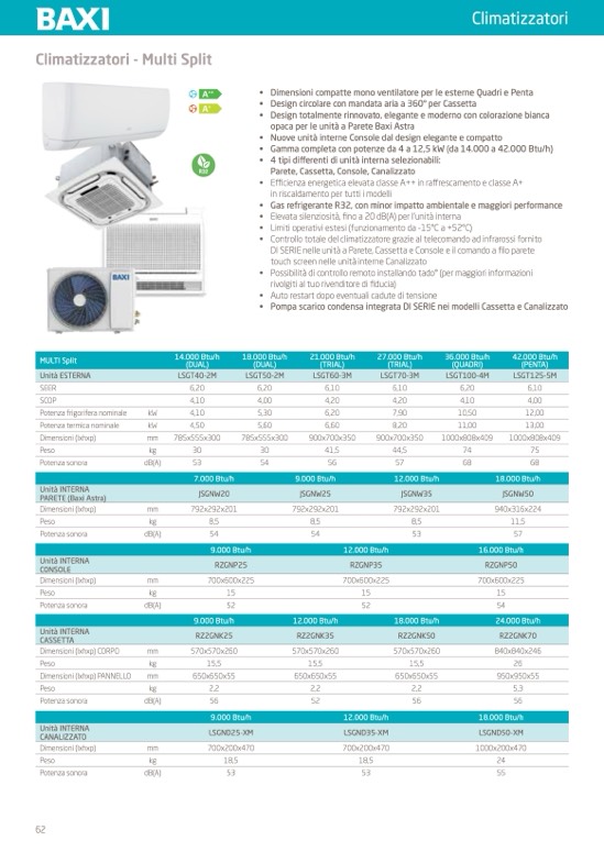• Gamma completa con potenze da 4 a 12,5 kW (da 14.000 a 42.000 Btu/h)