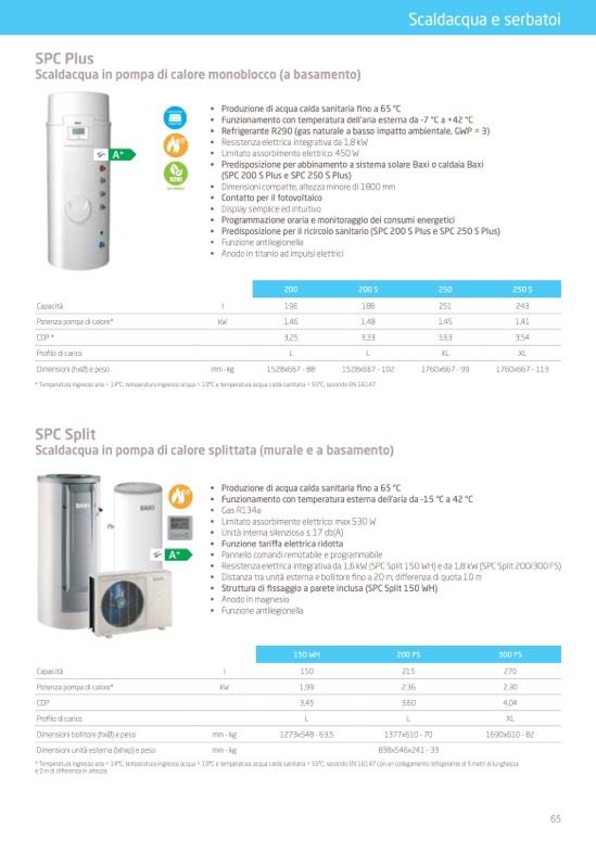 • Resistenza elettrica integrativa da 1,6 kW (SPC Split 150 WH) e da 1,8 kW (SPC Split 200/300 FS)