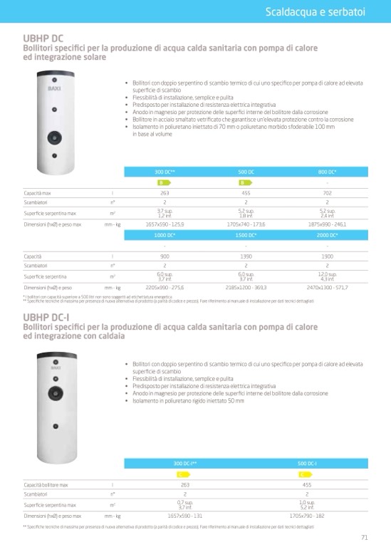 * I bollitori con capacità superiore a 500 litri non sono soggetti ad etichettatura energetica