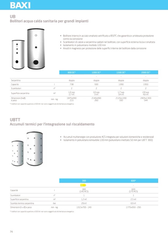 * I bollitori con capacità superiore a 500 litri non sono soggetti ad etichettatura energetica