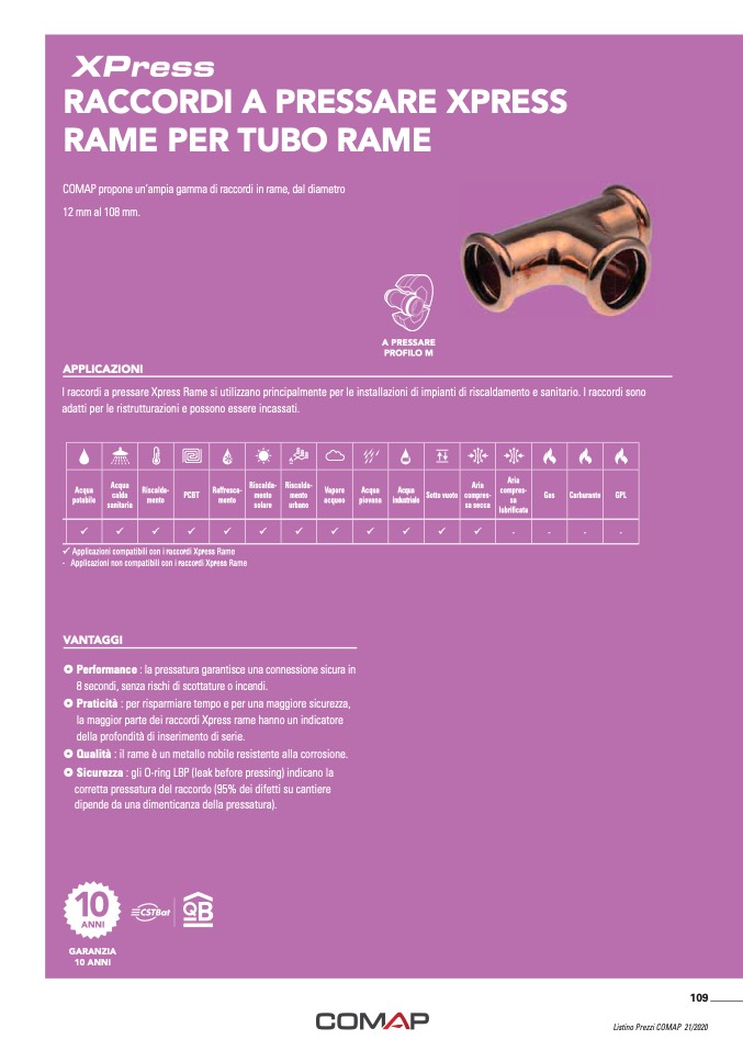 COMAP propone un’ampia gamma di raccordi in rame, dal diametro