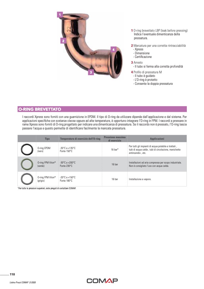 rame Xpress sono forniti di O-ring progettato per indicare una dimenticanza di pressatura. Se il raccordo non è pressato, l’O-ring lascia
