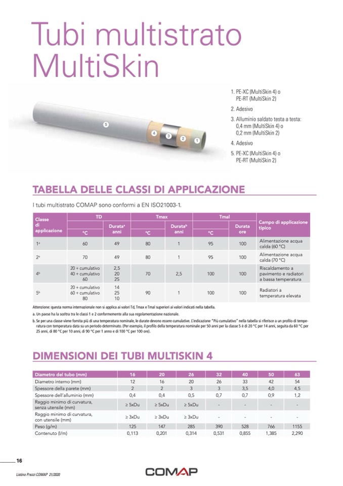 I tubi multistrato COMAP sono conformi a EN ISO21003-1.