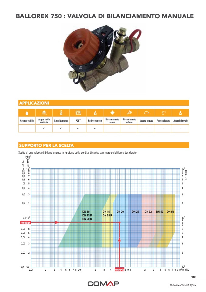 Scelta di una valvola di bilanciamento in funzione della perdita di carico da creare e del usso desiderato.