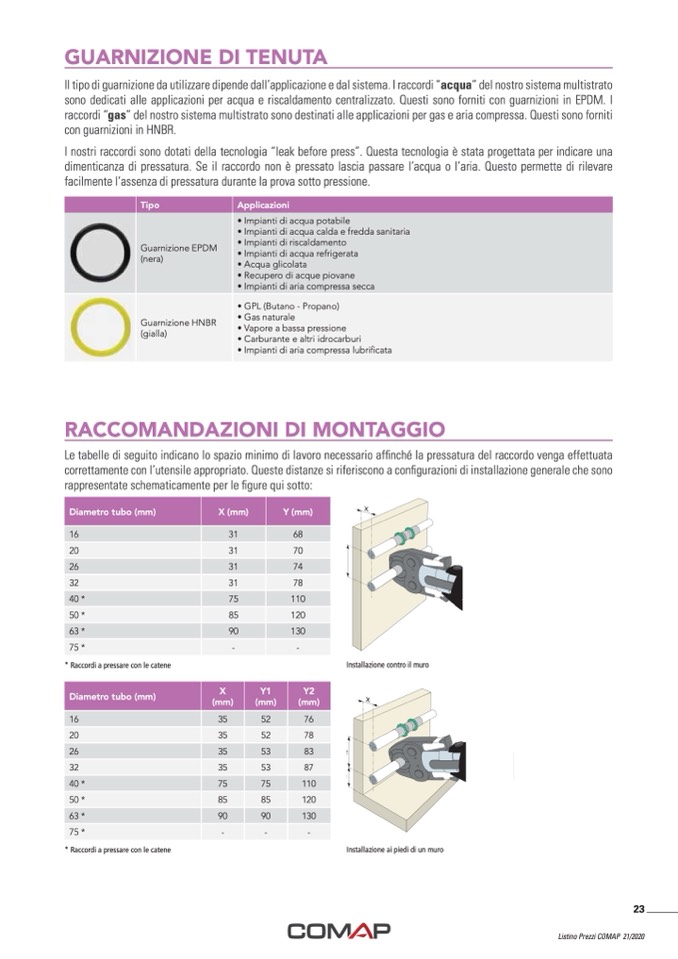 Il tipo di guarnizione da utilizzare dipende dall’applicazione e dal sistema. I raccordi “acqua” del nostro sistema multistrato
