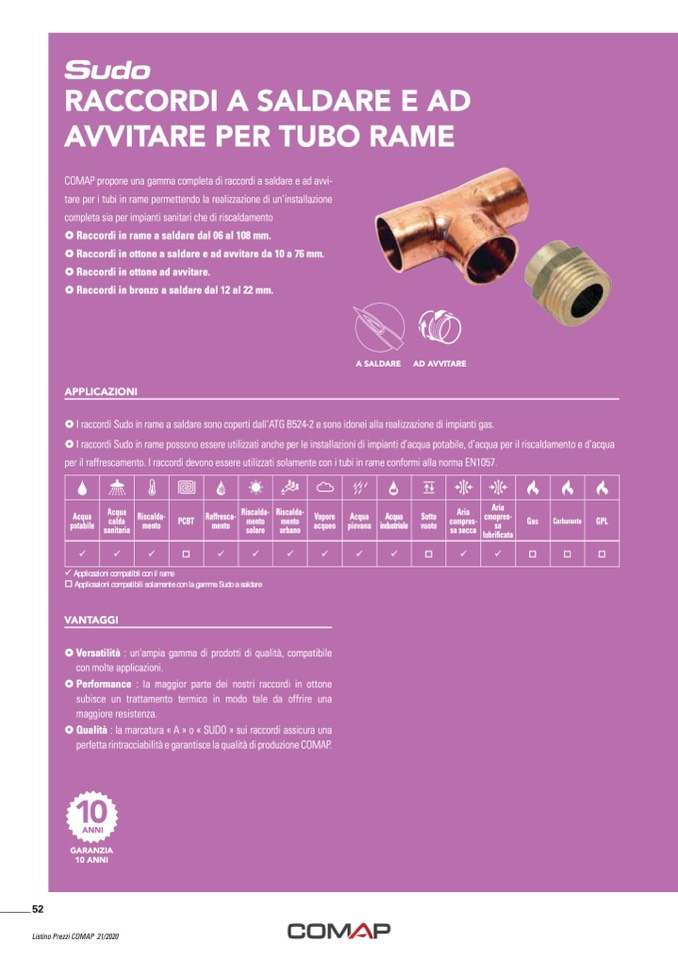 I raccordi Sudo in rame a saldare sono coperti dall’ATG B524-2 e sono idonei alla realizzazione di impianti gas.