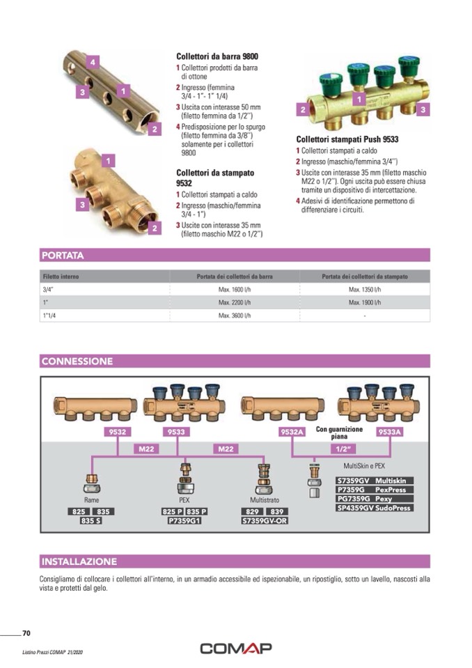 Consigliamo di collocare i collettori all’interno, in un armadio accessibile ed ispezionabile, un ripostiglio, sotto un lavello, nascosti alla