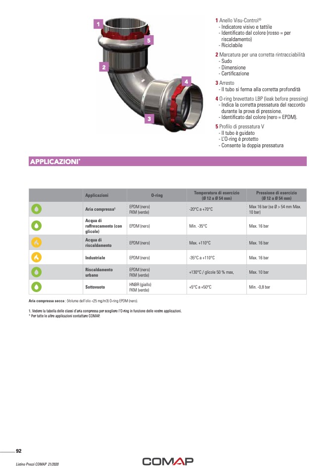 1. Vedere la tabella delle classi d’aria compressa per scegliere l’O-ring in funzione delle vostre applicazioni.