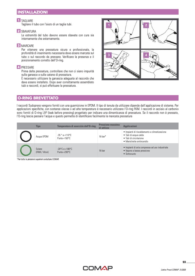 sono forniti di O-ring LBP (leak before pressing) progettato per indicare una dimenticanza di pressatura. Se il raccordo non è pressato,