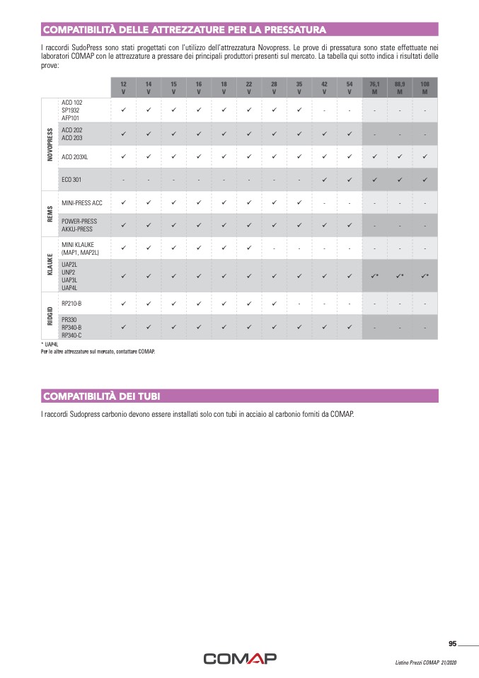 I raccordi Sudopress carbonio devono essere installati solo con tubi in acciaio al carbonio forniti da COMAP.