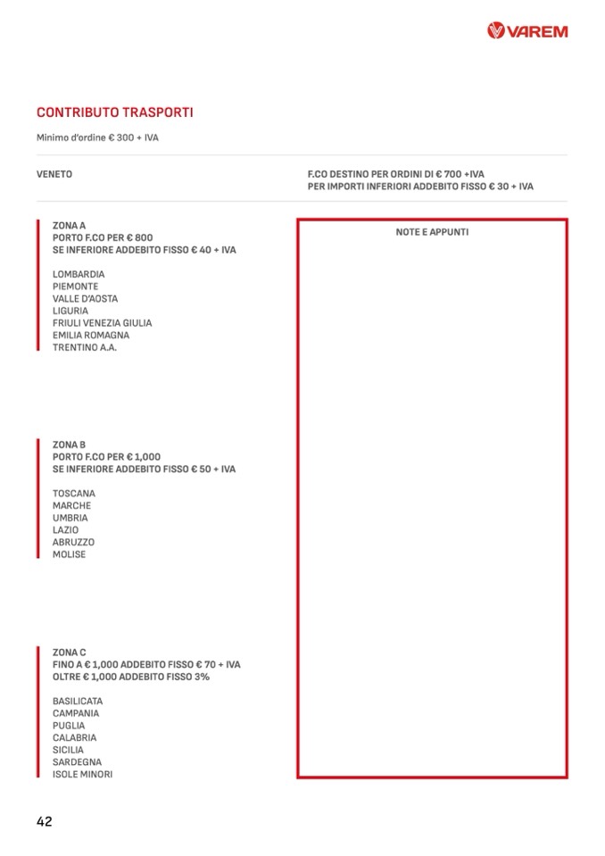 F.CO DESTINO PER ORDINI DI € 700 +IVA