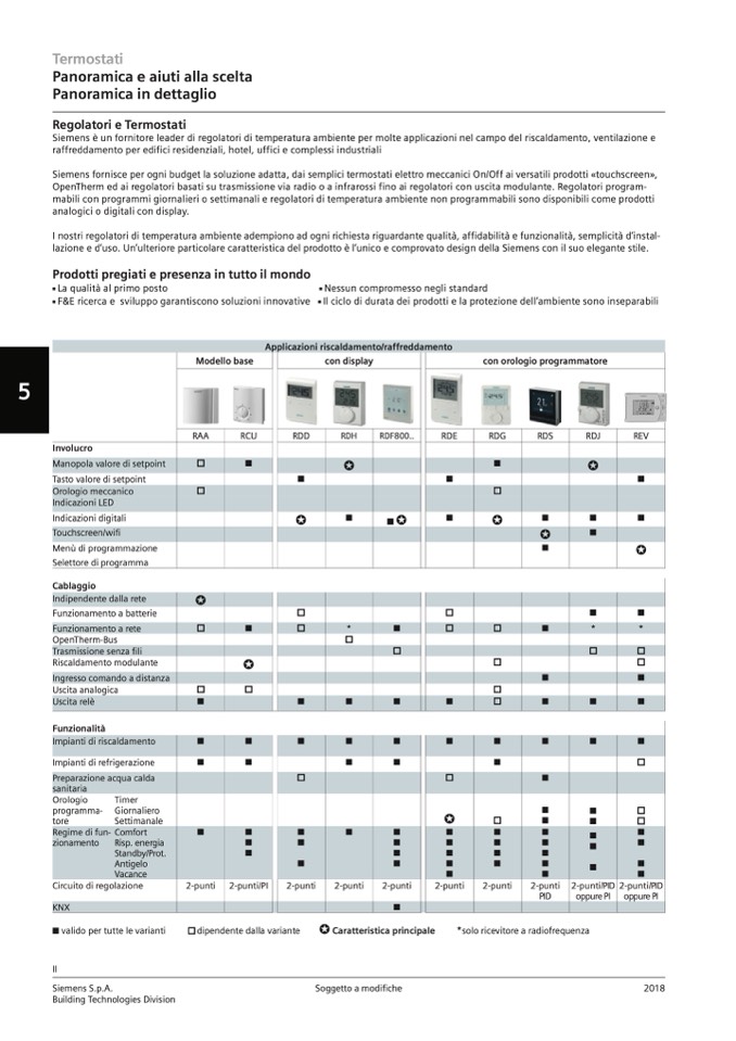 Siemens fornisce per ogni budget la soluzione adatta, dai semplici termostati elettro meccanici On/Off ai versatili prodotti «touchscreen»,