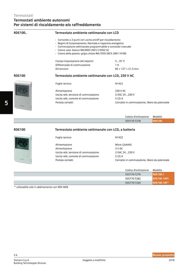* utilizzabile solo in abbinamento con RDE-MZ6