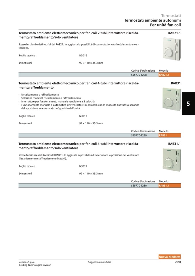 Stesse funzioni e dati tecnici del RAB21. In aggiunta la possiblità di commutazione/raffreddamento e ven-