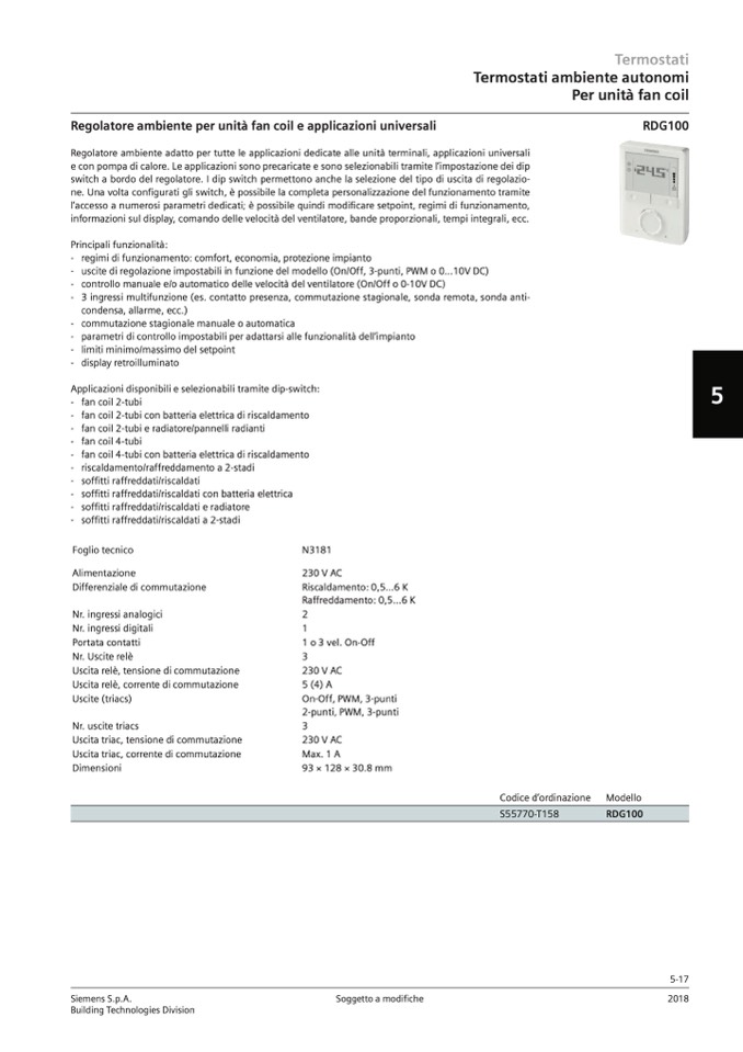 Regolatore ambiente adatto per tutte le applicazioni dedicate alle unità terminali, applicazioni universali