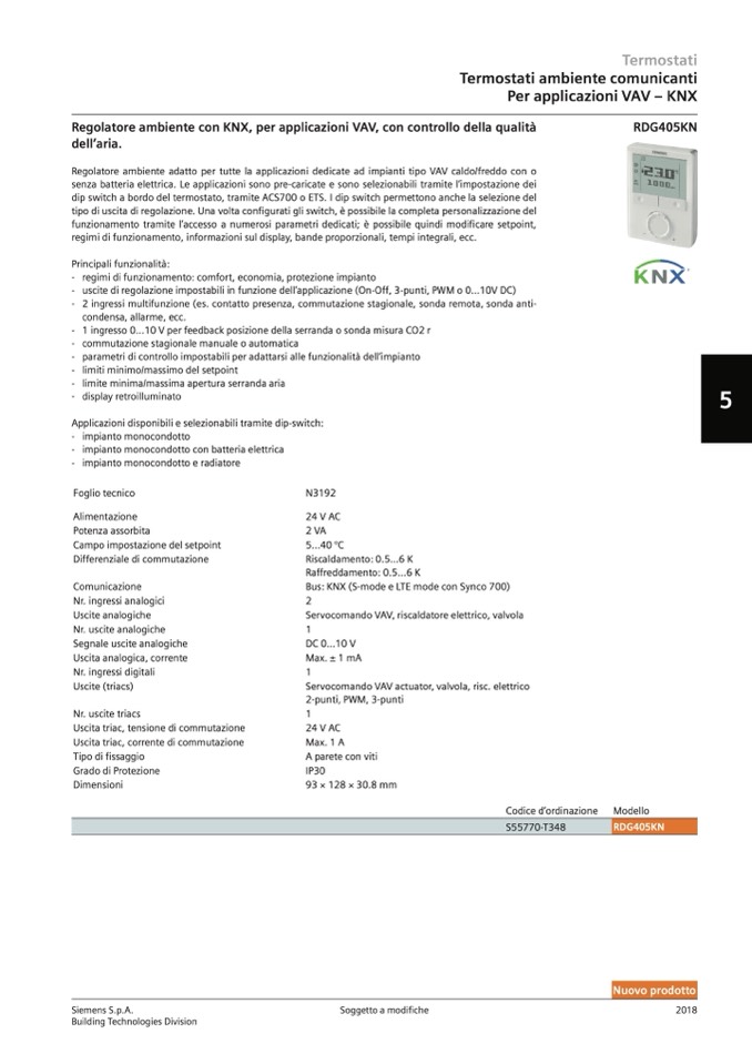 Bus: KNX (S-mode e LTE mode con Synco 700)