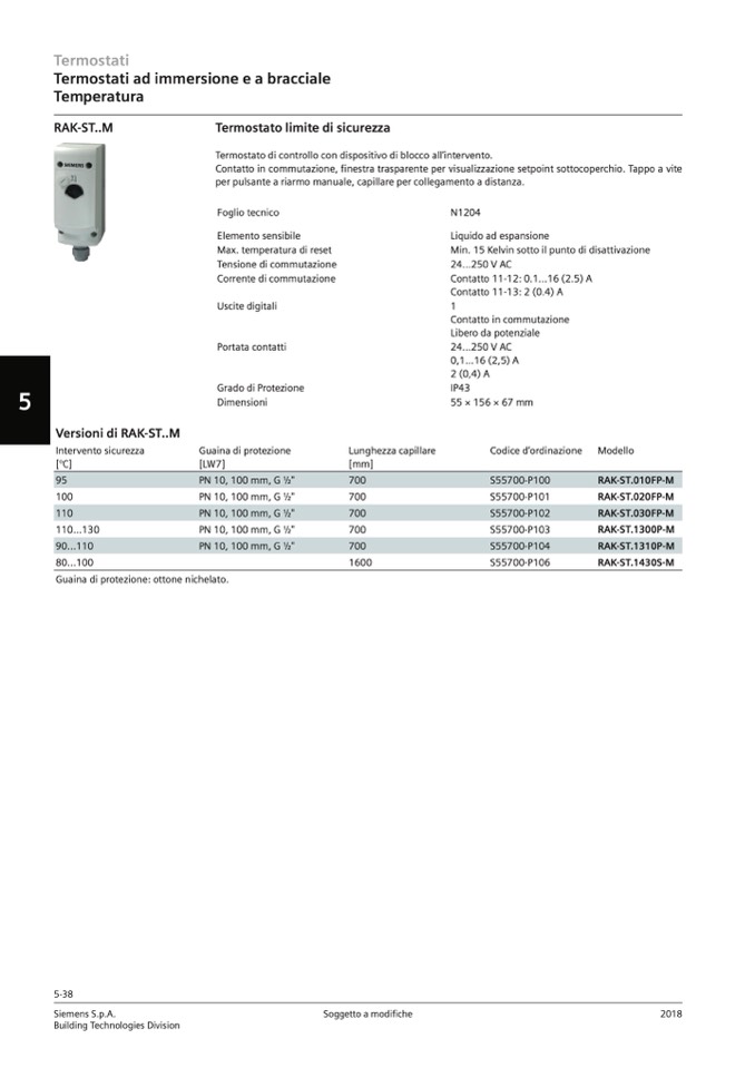 Termostato di controllo con dispositivo di blocco all’intervento.